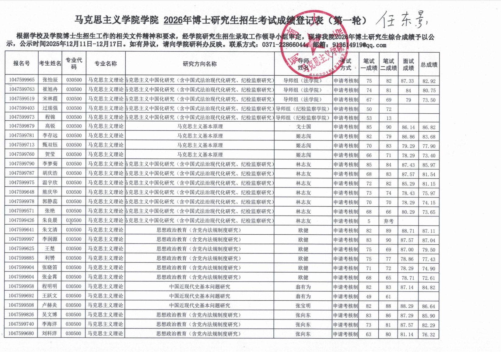 马克思主义学院研究生2026年博士招生综合成绩公示