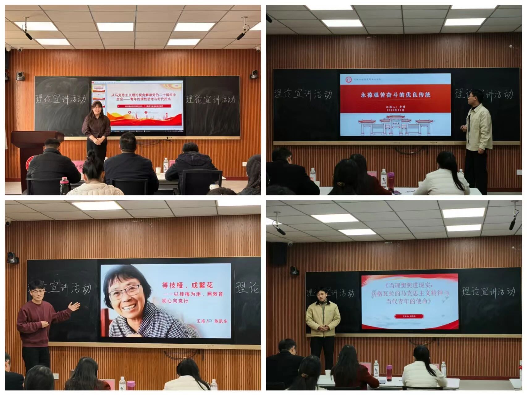 理论宣讲比赛中,参赛选手紧扣时代主题,立足时政热点与专业所学,或深情讲述时代榜样的感人事迹,或结合学术研究阐释党的创新理论的实践伟力,或围绕社会热点分享青年学子的责任与担当。选手们精神饱满、表达流畅,既有理论深度,又有情感温度,充分展现了新时代研究生坚定的理想信念、扎实的理论素养和昂扬的精神风貌。