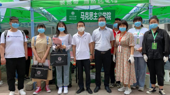 在为期两天的毕业生返校报到中,学院党委书记杨光辉、常务副院长张向东等全体院领导来到了返校报到现场,向参与学生返校工作的老师、学生志愿者致以亲切的问候,向返校学生叮嘱做好个人防护。由于学生返校时间比较分散,从早上七点半,到晚上七点半,顺河公寓楼下的马克思主义学院报到点始终有人坚守岗位,报到现场高效运转、秩序井然。至6月14日晚,能返校的毕业生全部顺利返校。