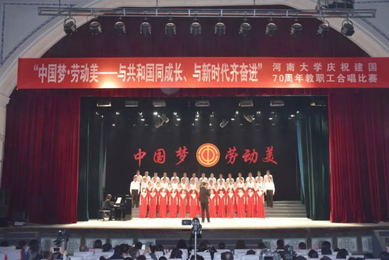 为庆祝中华人民共和国(新中国)成立七十周年,4月20日晚上,河南大学“中国梦·劳动美——与共和国成长,与新时代齐奋进”教职工合唱比赛第一场预赛在明伦校区大礼堂举行。经过认真组织筹备,马克思主义学院六十余名教职工代表学院参加比赛。