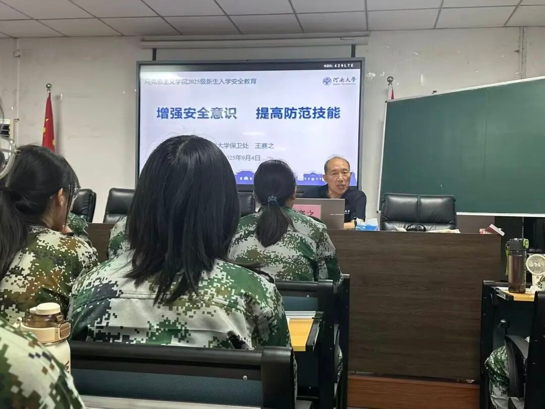 为全方位守护学生成长,马克思主义学院为新生开展安全教育和健康教育。9月4日,学院邀请校保卫处副处长、人民武装部副部长王赛之作安全教育,王老师以“增强安全意识,提高防范技能”为题,在案例与理论的结合中,强化了新生们对于校园高频风险问题的认识。