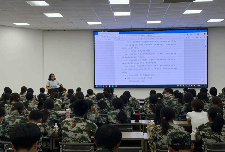 9月3日,马克思主义学院2025级本科生辅导员张洁宜对新生进行校规校纪教育,为新生详细解读了大学生行为准则、学籍管理及宿舍管理等规章制度,从日常行为规范到学术诚信的红线,帮助新生明晰校园规则边界,引导新生树立正确的价值观,自觉维护校园和谐稳定,引导学生知规、懂规、守规。