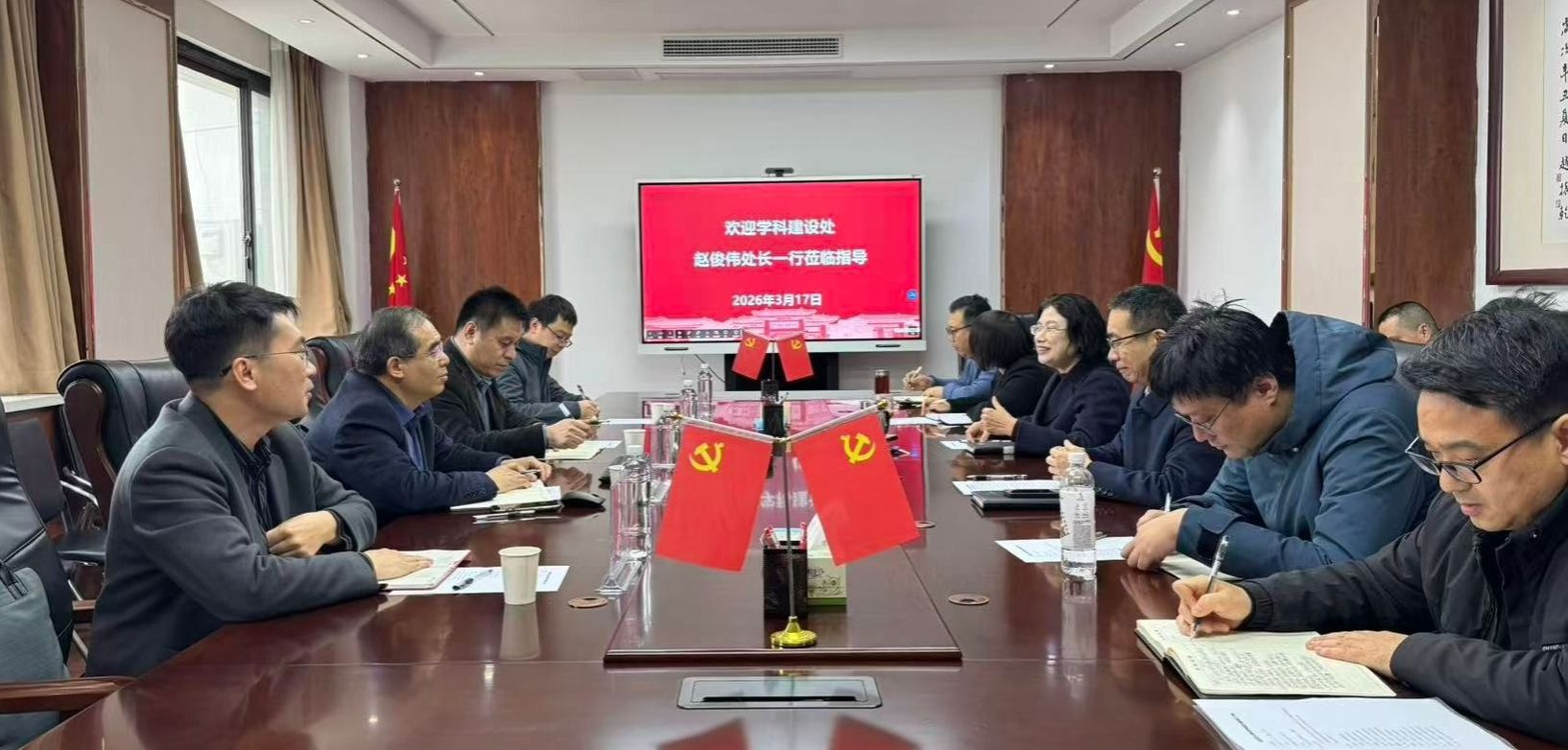 3月17日上午,为深入了解和全面推动马克思主义理论学科建设,学科建设处处长赵俊伟、副处长周云凯、何威等到马克思主义学院调研指导。学院领导班子全体成员及各行政办公室负责人参加座谈会。会议由学院党委书记彭绪琴主持。
